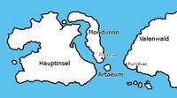 Die Insel Artaeum ist kartographisch sehr schwer zu erfassen. Besucher sind auf dieser Insel so selten, dass man kaum davon gehört hat. Laut dem Buch Über Artaeum liegt Artaeum südlich des Dorfes Moridunon. Doch Moridunon ist kein Dorf sondern die zweitgrößte Insel der Sommersend-Inseln, daher kann man davon ausgehen, dass Artaeum südlich der zweitgrößten Insel der Sommersend-Inseln liegt. [1]