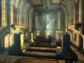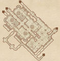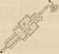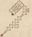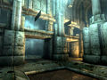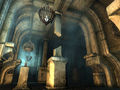 Gleich hinter der Eingangstür beginnt der für Ayleid-Ruinen so typische halbkreisförmige Treppenraum. Der Fußboden weist hier einige Verwitterungsspuren auf. Die eigentliche Gefahr geht jedoch von insgesamt vier Schwingenden Eisenklingen aus. Es erfordert reichlich Geschick, ihnen in dem engen Gang auszuweichen. Hat man dies geschafft, findet man sich auf eine Kreuzung wieder. Durch eine kreisrunde Öffnung in der Decke fällt letztmalig Tageslicht in den Raum. Geradeaus führt der Gang durch ein Eisentor und endet auf einem kleinen Balkon mit Ausblick auf die durch Kristallkörbe beleuchtete tiefer gelegene Sektion der ersten Halle. Die Gänge rechts und links führen auf diese Ebene. Über eine Steintreppe gelangt man wieder nach oben und erreicht nach einer weiteren langgezogenen Halle die Tür zu Atatar Haelia Dagon.