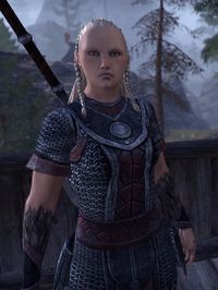 In 2Ä 582 kam sie von Shors Stein nach Jorunns Wehr, um nach Hilfe zu suchen, da die Siedlung an der Grenze von Rift von Reikmannen angegriffen wurde.[1][2]
