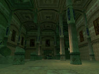 Nach einem abschüssigen Gang gelangt man an eine Kreuzung. Im Westen befindet sich der Durchgang zur Halle des Heulens, während im Osten ein Gang weiter bergab in eine große langgezogene Halle führt, deren Ende von einem Deckeneinsturz blockiert wird. Hinter diesem Deckeneinsturz wird der ursprüngliche Eingang zu den unterirdischen Bereichen von Bamz-Amschend vermutet. Dies wird durch die allgemeine Architektur dieses Bereiches gestärkt. Die offene Halle wirkt einerseits einladend, aber auch respekteinflößend. Durch den Anstieg nach der Halle wurde dem Besucher das Gefühl vermittelt in die wichtigeren Bereiche vorzustoßen, was sicherlich auch der Wahrheit entsprach.
