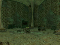 Das erste Zimmer links enthält dagegen eine Dwemer-Turbine, die wahrscheinlich Teil der Energieversorgung ist. Das zweite Zimmer auf der rechten Seite enthält einen Pumpe, die Wasser aus einem Brunnen im Boden durch eine Rohrleitung nach oben pumpte. Hier kann man auch ein Buch über die Wartung von Maschinen finden. Im zweiten Zimmer auf der linken Seite hat sich ein Deckeneinbruch ereignet und alle ehemalige Einrichtung des Zimmers unter sich begraben.