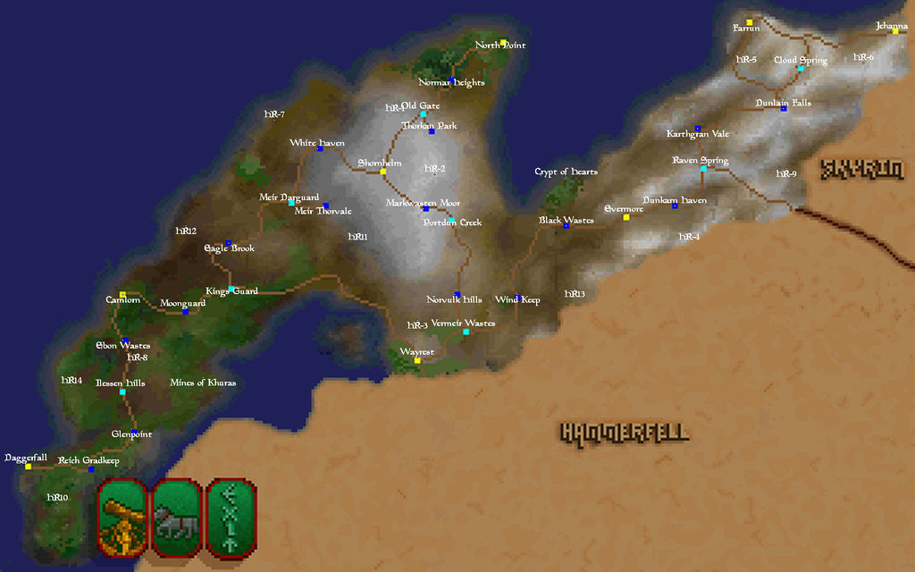 Eine kommentierte Originalkarte von Hochfels aus dem Spiel The Elder Scrolls I: Arena.