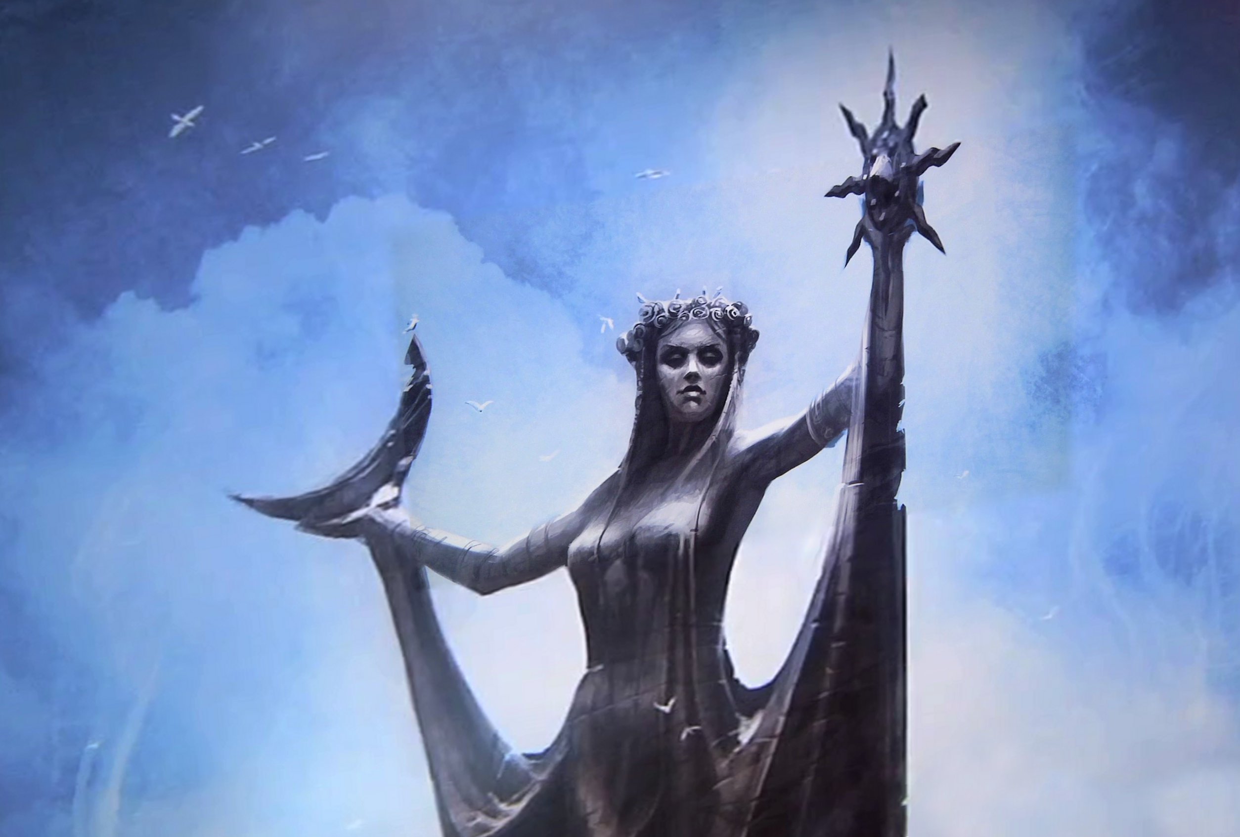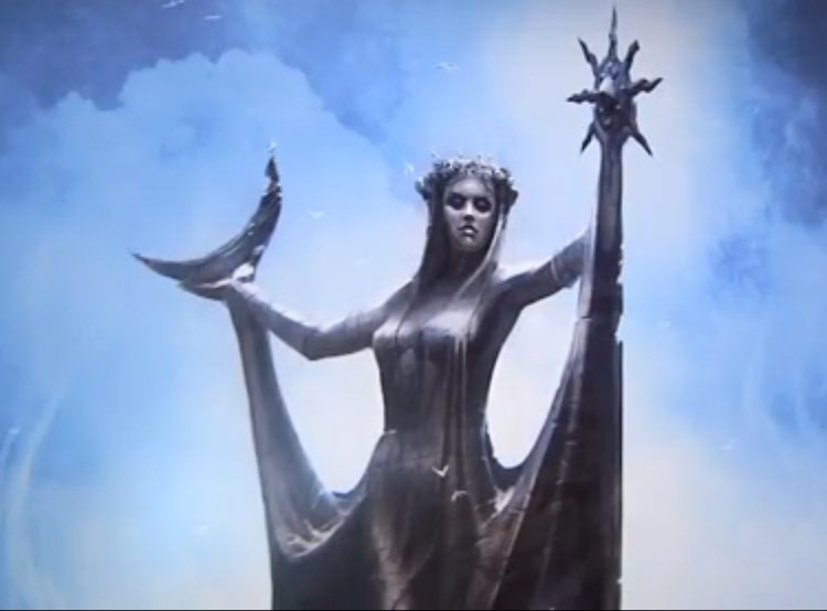 Artwork von Azura aus The Elder Scrolls V: Skyrim, zuerst gesichtet im Hauptsitz von Bethesda Softworks in Rockville, Maryland aus dem Game Informer Video "Behind The Scenes Of Skyrim" [abgerufen am 15.01.2011]