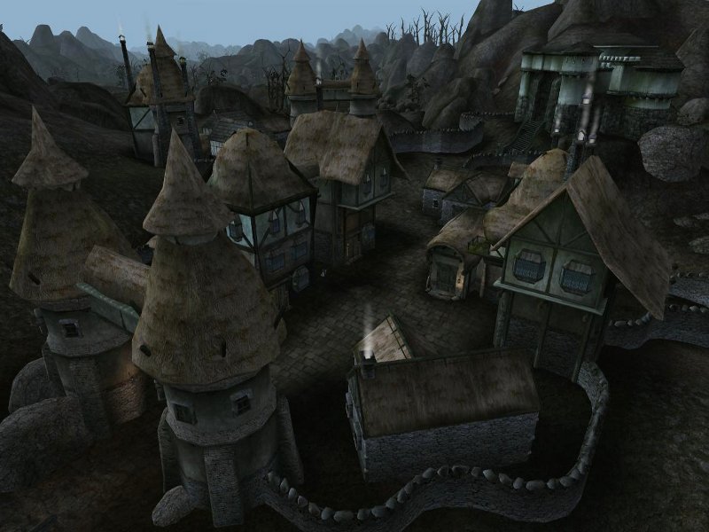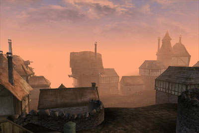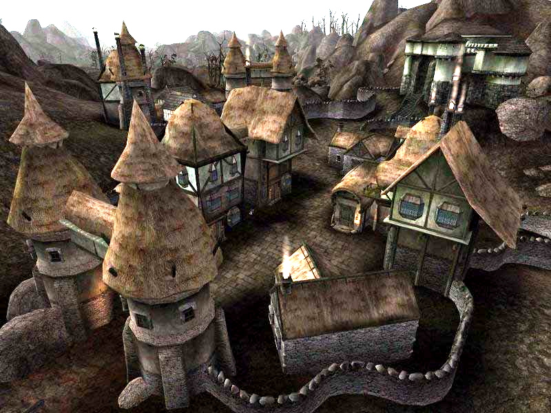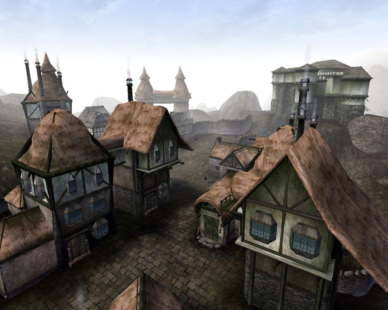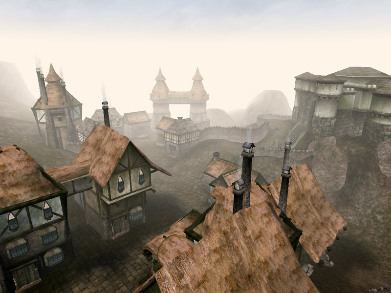 Dieses Bild wurde mit Hilfe des Morrowind Graphic Extenders (MGE) aufgenommen. Durch diesen wird durch die Sichtweite im Spiel unbeschränkt.