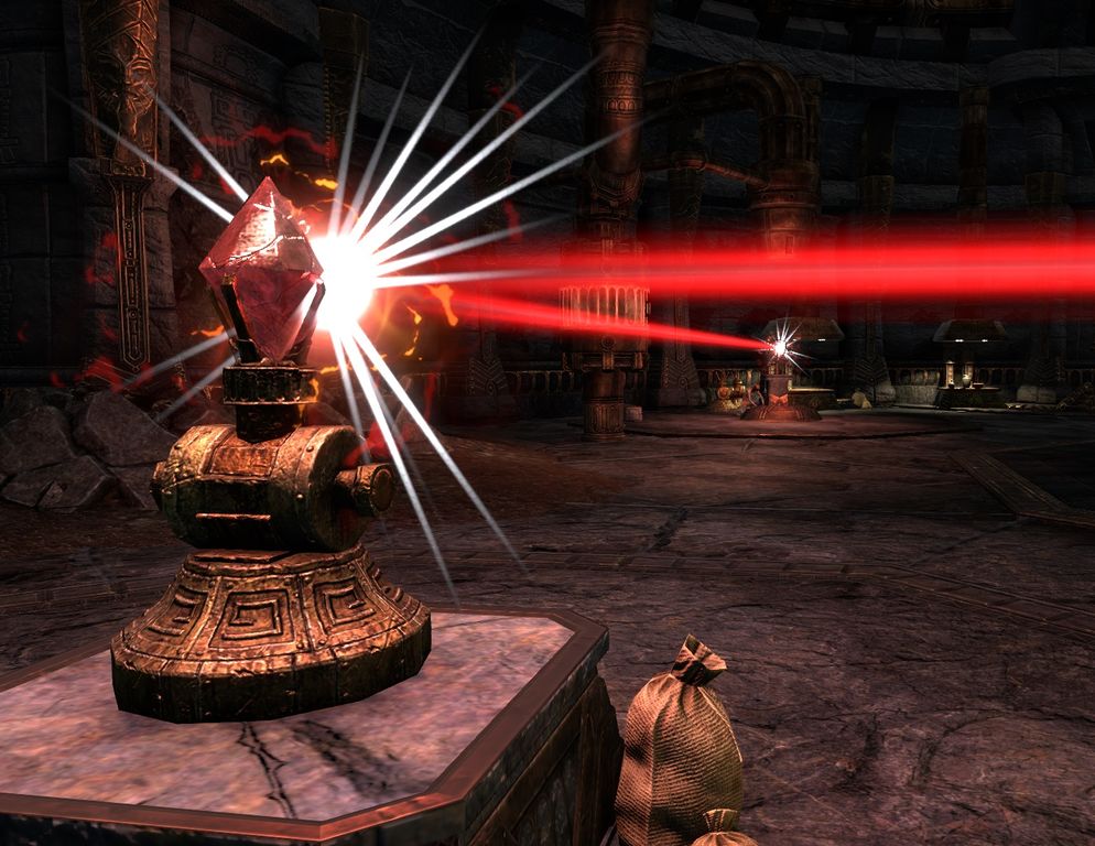 Lichtstrahl zwischen den Dwemerprismen in Bthanual