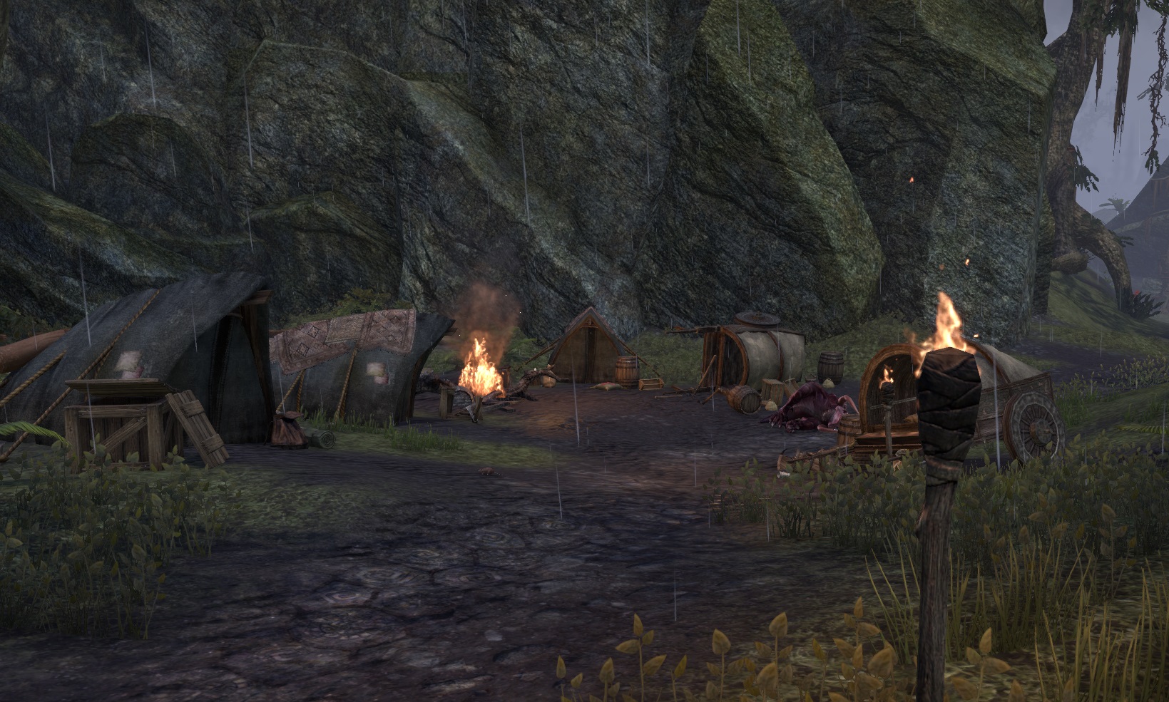 Zelte im dunmerischen Stil vor dem Eingang zu Hei-Halai