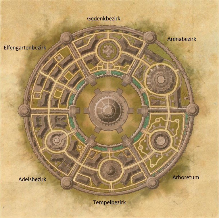 Die Stadtkarte der Kaiserstadt in der Region Cyrodiil mit Beschriftung