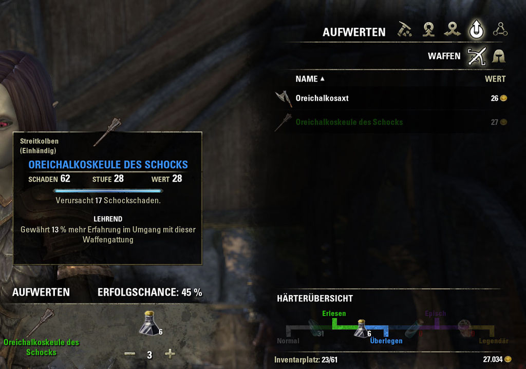 Aufwertung eines Gegenstandes in The Elder Scrolls Online.