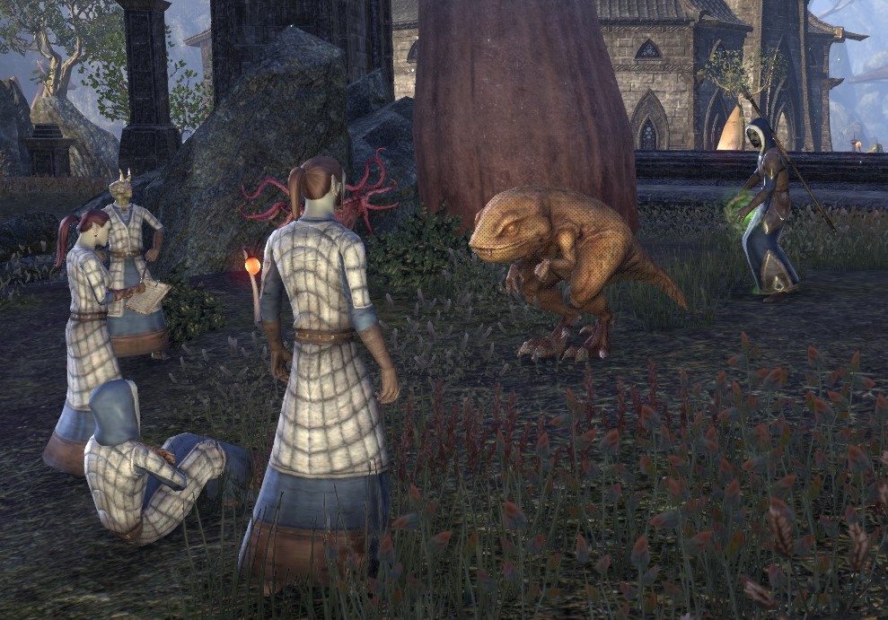 Ausbilder von Shad Astula zeig den Studenten Beschwörungen. Hier ist ein Guar zu sehen, doch wechselt er auch zu Kwama und Kagouti
