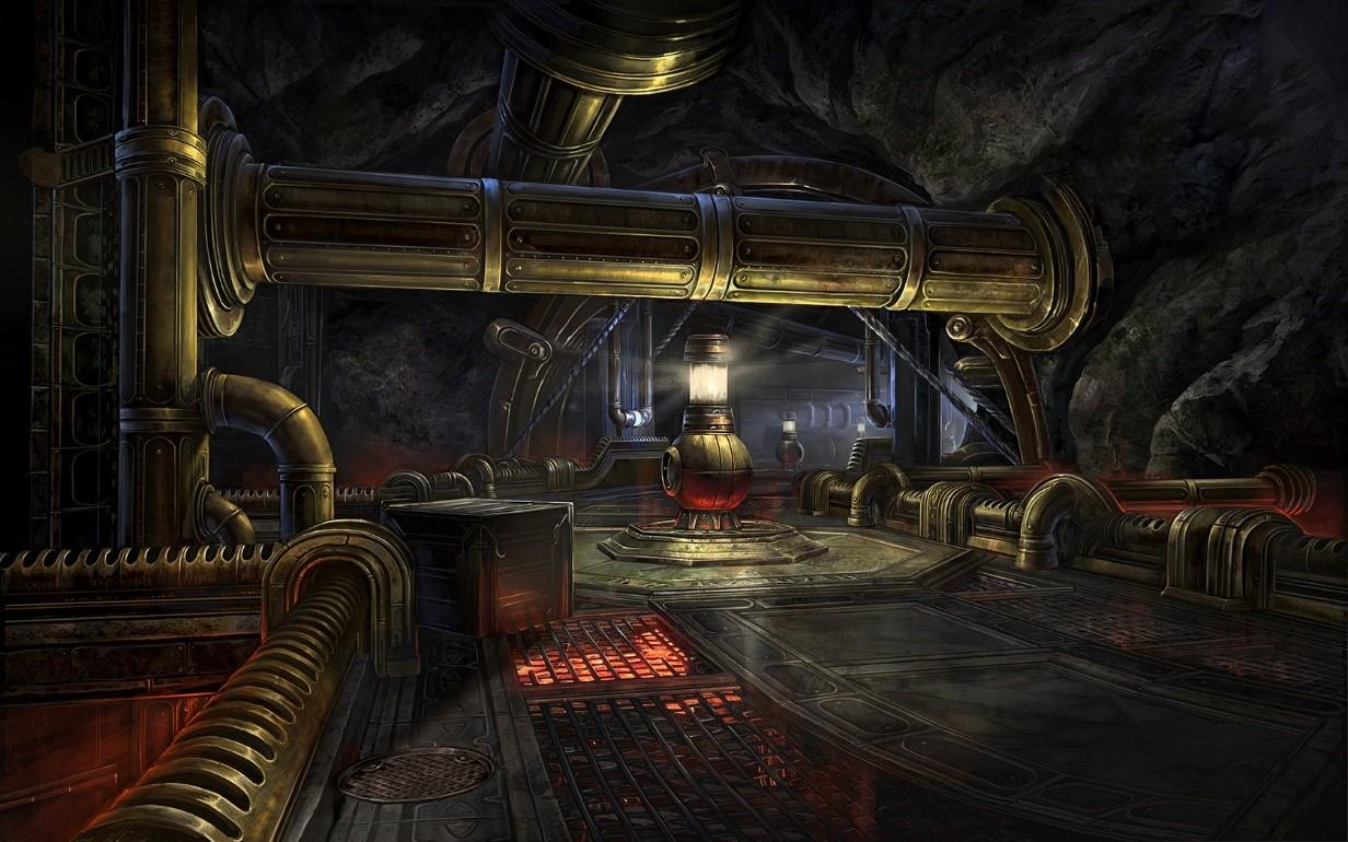 Zeichnung des mechanischen Fundaments in der Stadt der Uhrwerke.