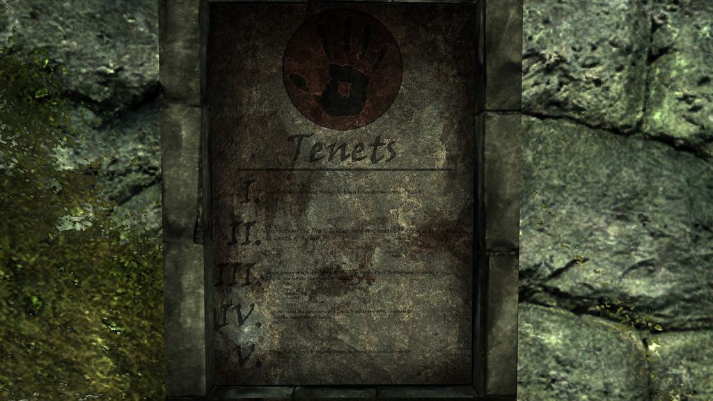 Die fünf Gebote der Dunklen Bruderschaft aus der Zuflucht von Dämmerstern.