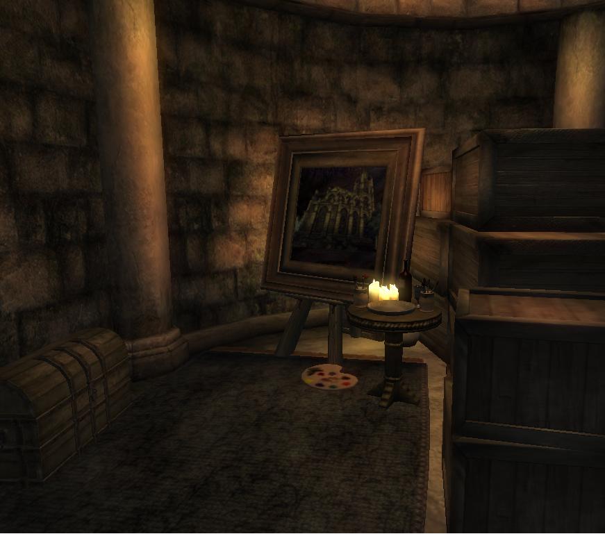 Dieses Bild zeigt das versteckte "Atelier" im Westturm von Schloss Chorrol.