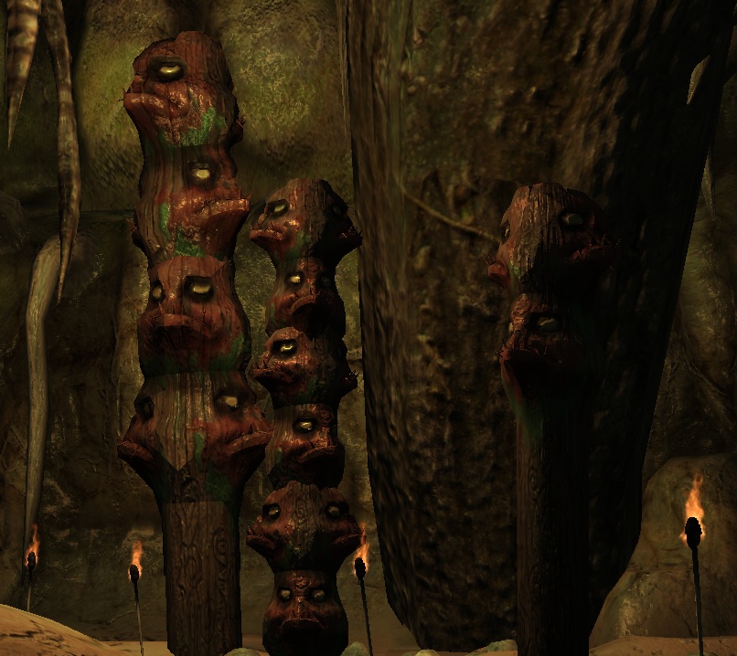 Grummit-Totempfähle in der Schwarzwurz-Höhle