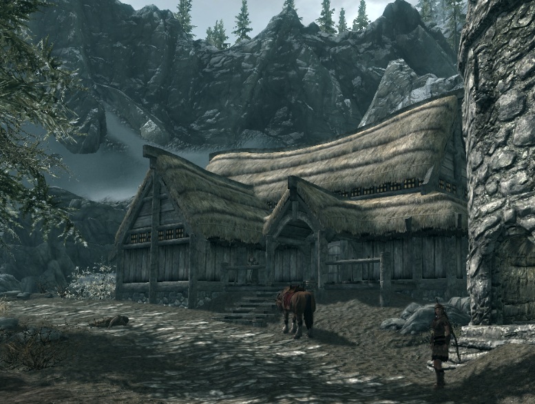 Das Gasthaus in Helgen vor dem Angriff