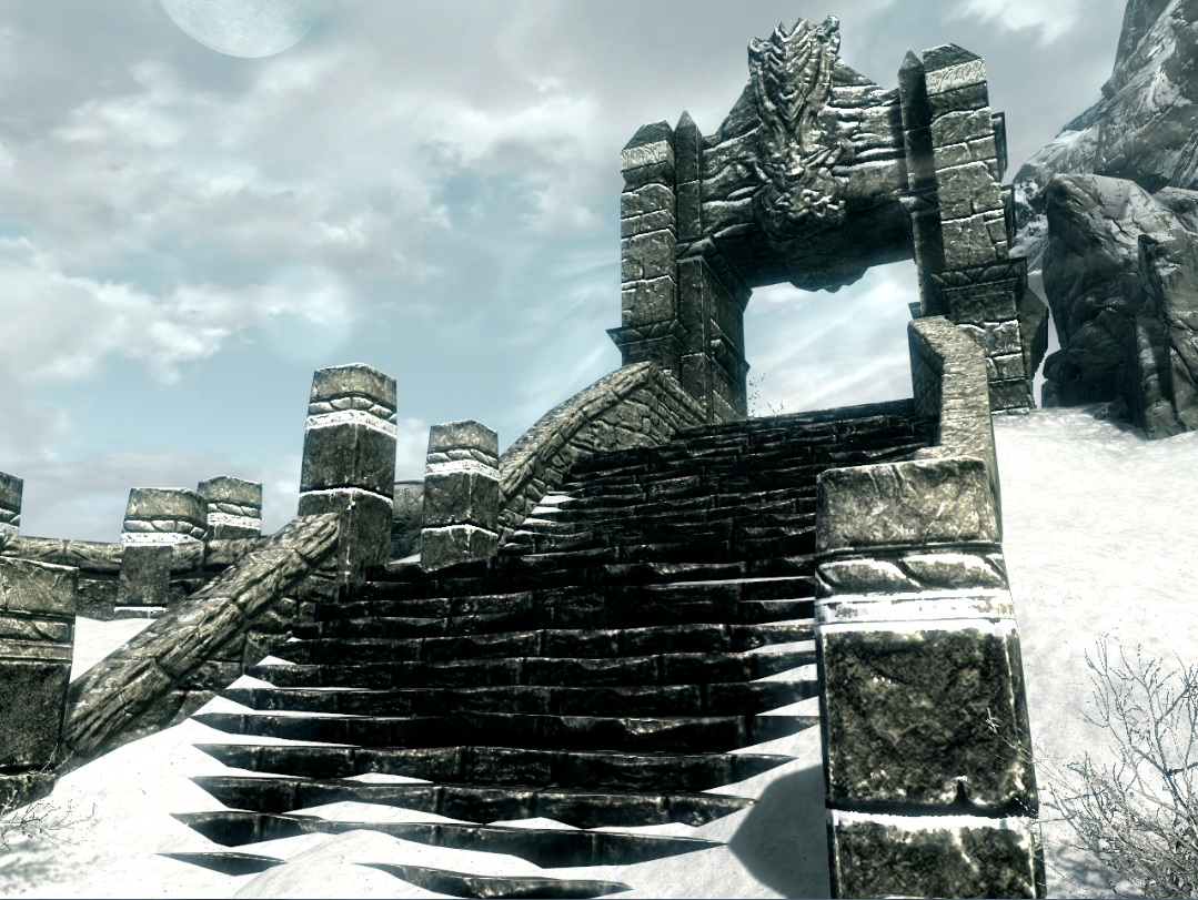 Der Beginn des Pfads zum Gipfel des Hohen Hrothgars im Kloster Hoch-Hrothgar.