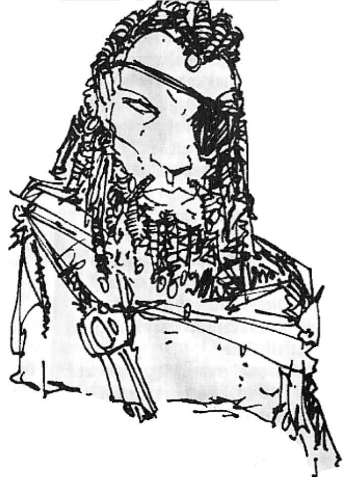 Ein Rothwardone mit Augenklappe. Abbildung aus Der kleine Tamriel-Almanach (1. Auflage), Kapitel Hammerfell