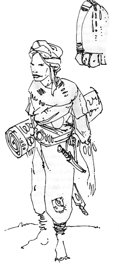 Ein Rothwardone mit Turban. Abbildung aus Der kleine Tamriel-Almanach (1. Auflage), Kapitel Hammerfell