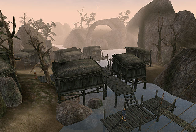 Dieses Bild wurde mit Hilfe des Morrowind Graphic Extenders (MGE) aufgenommen. Durch diesen wird durch die Sichtweite im Spiel unbeschränkt.