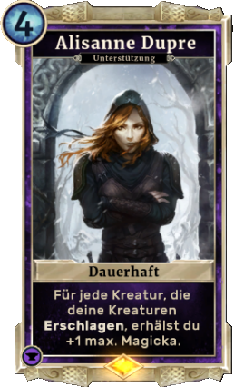 Die Karte Alisanne Dupre aus der Der Fall der Dunklen Bruderschaft-Erweiterung von The Elder Scrolls: Legends