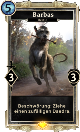 Eine Variante der Karte Barbas aus der Heroes of Skyrim Erweiterung zu The Elder Scrolls: Legends.