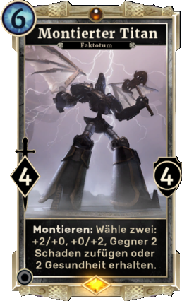 Die Karte Montierter Titan aus der Rückkehr in die Stadt der Uhrwerke Erweiterung zu The Elder Scrolls: Legends.