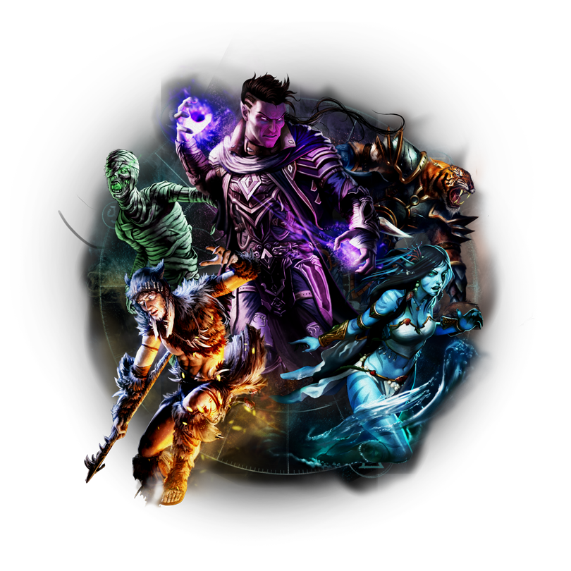 Das Logo von The Elder Scrolls: Legends mit unterschiedlichen Charakteren.