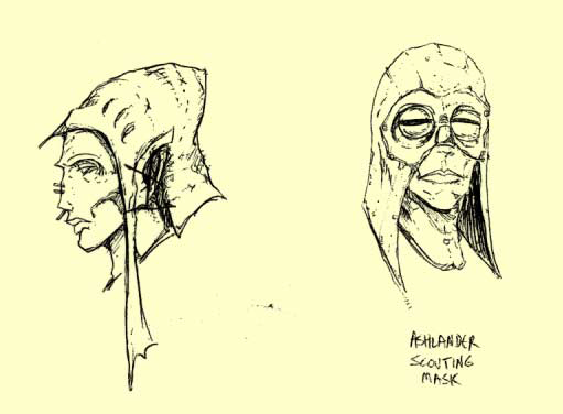 Zeichnung einer Maske der Aschländer aus Morrowind