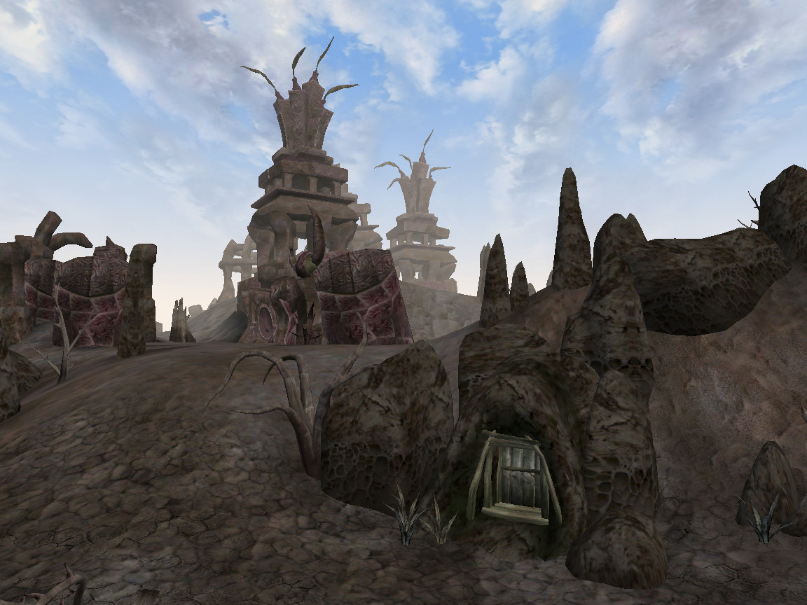 Dieses Bild wurde mit Hilfe des Morrowind FPS Optimizers v2.00 aufgenommen. Durch diesen wird durch die Änderung eines Registry-Eintrags die maximale Sichtweite im Spiel von 7168 auf 14336 Editoreinheiten erhöht (also verdoppelt).