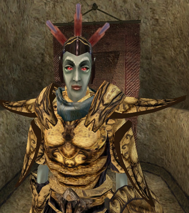 Melvure Rindu ohne Helm auf der Vivec-Wohninsel Hoher Tempel