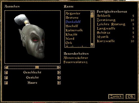 Auswahl der Rasse in The Elder Scrolls III: Morrowind
