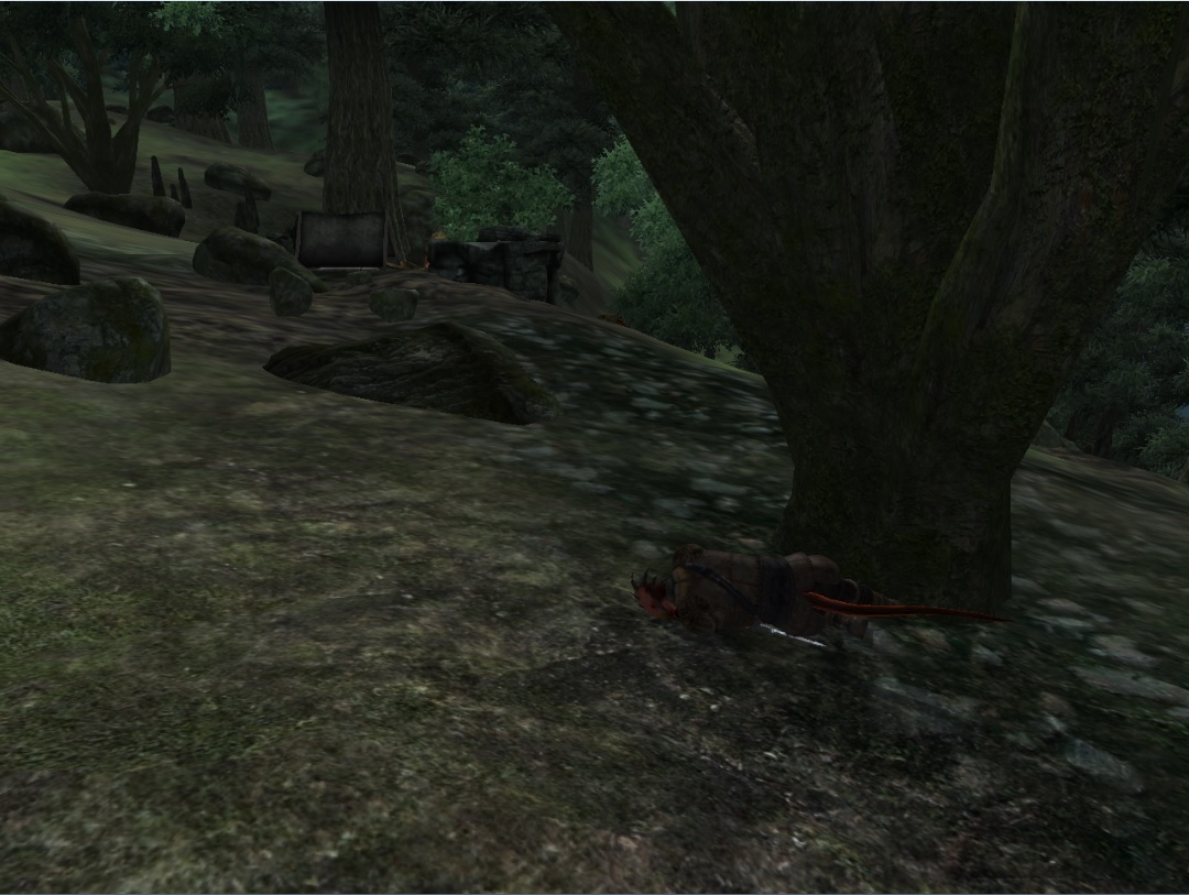 Der tote argonische Agente beim Lager Sumpfwasser (im Hintergrund).