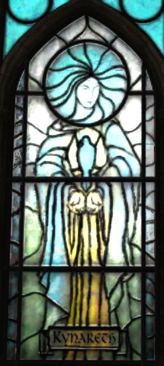 Glasmalerei von Kynareth im Fenster der Großen Kapelle von Stendarr.