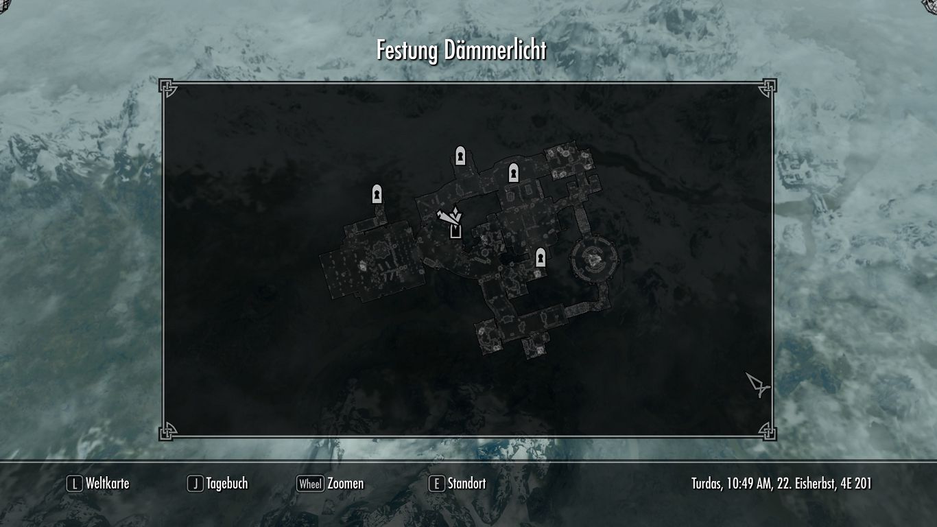 | aktuell | 19:13, 26. Mär. 2013 |  | 1.366 × 768 (109 KB) | Scharesoft (Diskussion | Beiträge) | Bild für die Quest Ran an die Bücher der Akademie von Winterfeste aus The Elder Scrolls V: Skyrim. Karte der Festung Dämmerlicht. |