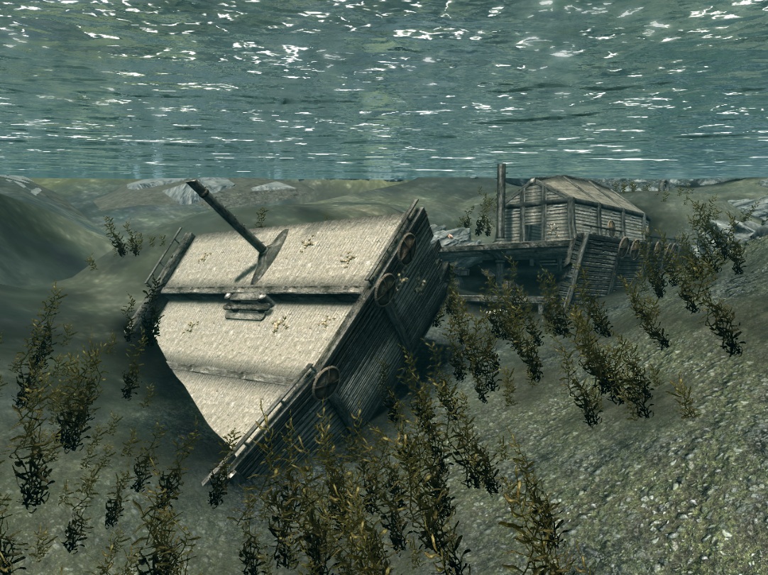 Das Wrack des Handelsschiffes Silbermond am Grund des Ilinaltasees im Fürstentum Falkrenring