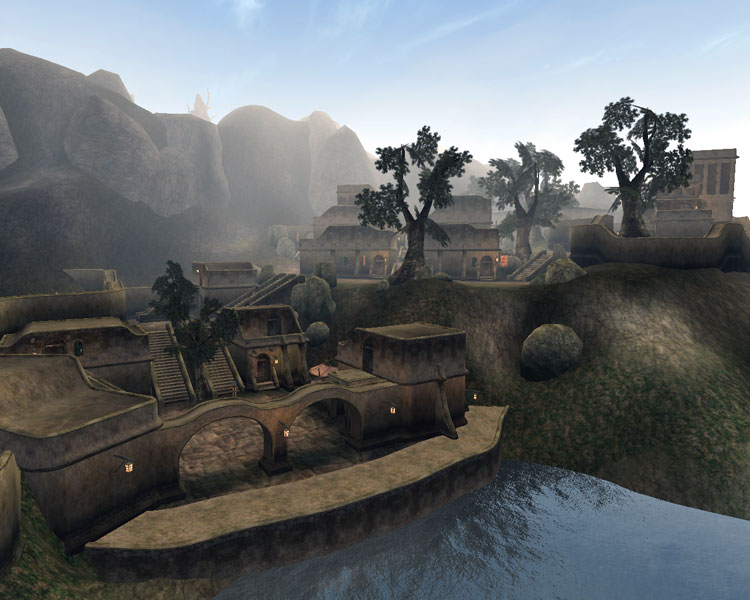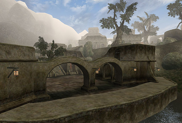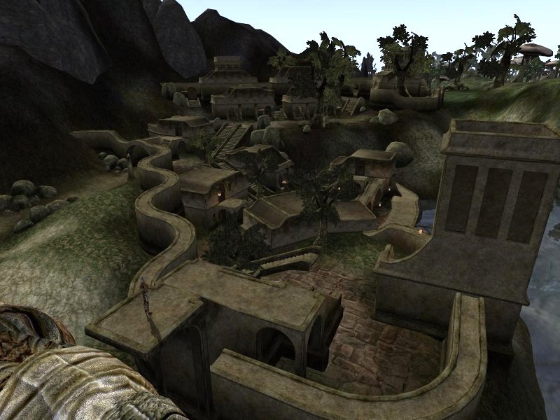Dieses Bild wurde mit Hilfe des Morrowind Graphic Extenders (MGE) aufgenommen. Durch diesen wird durch die Sichtweite im Spiel unbeschränkt.