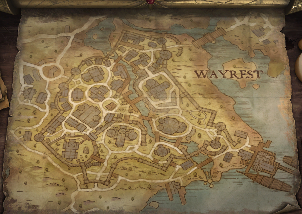 Die Karte ist zusammengesetzt aus mehreren Screenshots des Hintergrundbildes des 1. Kapitel des Kampagne von Der Fall der Dunklen Bruderschaft aus The Elder Scrolls: Legends