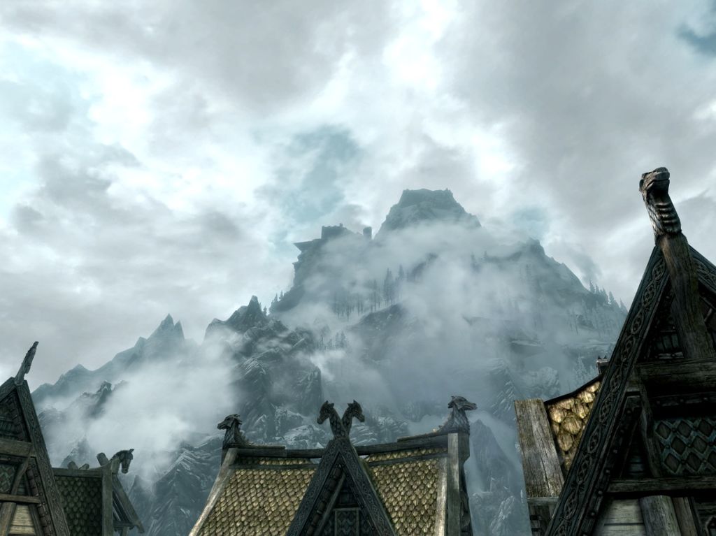 Blick von Weißlauf zum Hohen Hrothgar mit dem Kloster Hoch-Hrothgar links vom Gipfel.