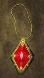 Eine große Bedeutung für das Kaiserreich Tamriel spielt der Rote Diamant, der zentrale Stein im Amulett der Könige, welcher der Legende nach aus dem Herzblut Akatosh besteht. Die erste menschliche Kaiserin Alessia erhielt ihn auf ihrem Totenbett von Akatosh/Shezarr zum Zeichen des Bundes zwischen Himmel und kaiserlicher Erde. Seit Alessia gehen die Seelen der Kaiser in diesen Diamanten ein. Der Stein selbst spielt eine wichtige Rolle bei den Kaiserlichen Krönungszeremonien, speziell beim Entzünden des Drachenfeuers. Jedes mal wenn ein neuer Kaiser den Rubinthron besteigt, muss er mit dem Amulett das Drachenfeuer im Tempel des Einen in der Kaiserstadt neu entzünden und so den Bund mit Akatosh erneuern, der die Barriere zwischen Oblivion und Mundus schützt. Diese wichtige Rolle zeigt sich auch in der Heraldik Tamriels. Sowohl im Wappen des Alessianischen Kaiserreichs als auch im Wappen der Ritter der Neun steht der Rote Diamant im Zentrum.