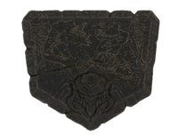 Auf der Vorderseite weißt der Stein eine reichhaltige Gestaltung und Verzierung auf. Das leicht erhöhte Zentrum bildet hierbei ein stilisierter Drachenkopf, wie er auch auf den vielerorts in Himmelsrand auffindbaren Wortwänden vorzufinden ist, in der unteren Hälfte des Steins, sowie eine Karte von Himmelsrand, die den oberen Teil des Steines einnimmt. Auf dieser Karte wiederum sind mit sternförmigen Markierungen die Lageorte von Drachengräbern eingezeichnet. Seitlich der Karte und in den tiefer gelegenen Randbereichen des Steines weißt dieser reichaltige Verzierungen in Form von für die frühnordische Kunst typischen[6] kringelförmigen Ornamenten und Kreisen auf.