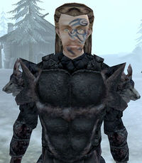 Er trug eine Rüstung aus Wolfsfell und kämpfte mit einem nordischen Silberclaymore. Wie viele Nord hatte er eine Tätowierung auf der linken Gesichtshälfte.