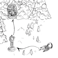 Die erste dieser Landmarken war der Drachenklauefelsen. Diese Felsformation markierte an der Silberstraße die Abzweigung nach Westen, die die Botenläufer der Tsaesci auf ihrem Weg zwischen der Garnison am Grauen Grat und der Festung am Fahlen Pass nehmen mussten. Rund einen Tagesmarsch entfernt stand die Statues des Wächters, möglicherweise eine alte Grenzmarkierung oder Warnung für Reisende aus Richtung Norden. Genau in Blickrichtung der Statue lag schließlich der Schlangenpfad, der erste Teil des Fahlen Passes.