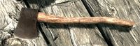 Um Feuerholz herstellen zu können, benötigt man eine Holzfälleraxt. Diese ist oft in der Nähe zum Hackklotz zu finden.