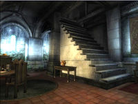 - ↑ Es wahr wohl ursprünglich geplant, den kleinen Raum über der Ältestenratkammer zum kaiserlichen Thronsaal zu machen. Im Construction Set von Oblivion findet sich z.B. eine nicht verwendete, kreisrunde Thronplattform mit rot-goldenem Teppich, welche genau auf das "Loch" im Raum passen würde. Der Kaiserpalast und der Palastbezirk an sich können sowieso nur als von offizieller Seite unfertig betrachtet werden (es fehlen z.B. die Gemächer des Kaisers sowie der in Die Wolfskönigin erwähnte "Blaue Palast")