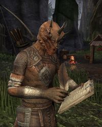 Kind-des-Waldes wurde mit seinem Stamm, der sich weigerte aufgrund der sklaventreibenden Dunmer dem Ebenherz-Pakt beizutreten, ins Exil geschickt. Auf der Suche nach einer neuen Heimat fand er Interesse an einem Weibchen aus seinem Dorf, mit dem er im Grauen Morast in 2Ä 581 ein neues Leben aufbauen wollte.[1] Es ist nicht bekannt, ob der Stamm im Grauen Morast bleiben konnte oder vom Aldmeri-Dominion vertrieben wurde.[2][3]