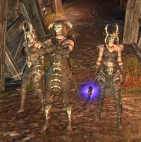 Die Knochenformer griffen Shors Stein an und besetzten die Rotbauchmine.[4] Ihre Schamanen gruben dabei die Leichen der toten Nord heraus und entzogen ihnen die letzte Magicka. Mit diesen errichteten sie eine Barriere um die Mine.[6] Ein Abenteurer drang durch den Schleier in die Mine ein und konnte gerade noch sehen, wie die Knochenformer-Schamanen den Riesen Sinmur erweckten.[7] Bei Shors Stein wurde auch Klanmatrone Linele Schädelhöhler auf Betreiben von Aera Erdwender getötet.[8]