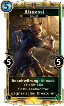 Beschwörung: Ahnassi stiehlt alle Schlüsselwörter gegnerischer Kreaturen. | |||||