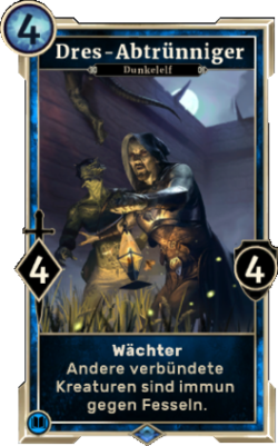 • Solange Dres-Abtrünniger im Spiel ist, können andere verbündete Kreaturen nicht gefesselt werden.