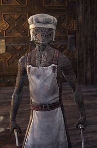 Macht-keine-Suppe war ein Argonier, der um 2Ä 582 als Koch im Eichenschlag-Emporium in Windhelm arbeitete. Der Argonier betrachtete Suppe als Essen für Trockenhäute, doch Eintopf als ein großartiges Mahl.[1]