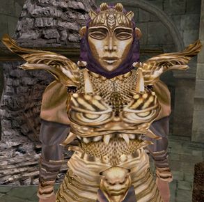 | Sirollus Saccus | Ich habe gehört, dass es in Vivec einen gut versteckten, Sheogorath geweihten Schrein gibt. Einige behaupten, sie hätten mit dem Daedraprinzen gesprochen, doch sie müssen verrückt sein. Zumindest sind sie es jetzt. |