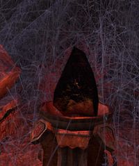 In 2Ä 582 entdeckte der Spinnenkult unter der Witwe Vila Theran den Schrein und das Relikt wieder[5] und wollte eine Armee von Schatten erschaffen, um die nahe Region zu kontrollieren. Sie wurden allerdings von einigen Abenteurern und Mitgliedern der Kriegergilde unter Führung von Doppelklinge aufgehalten, die die Witwe Theran töteten und die Obsidianhülle mit Magie zerstörten.[6]